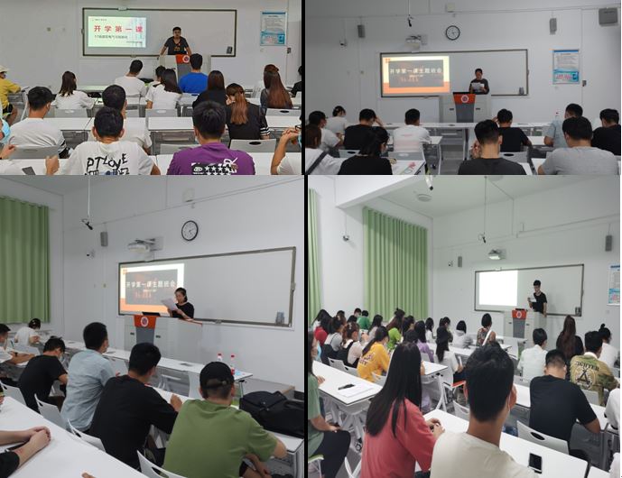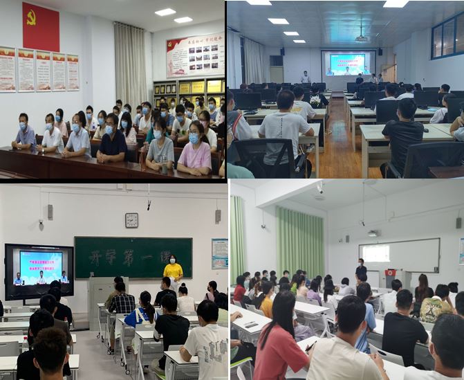 课上,还观看了国家疾控中心录制的开学第一课:《如何防控新冠肺炎》视频。课后,各班级或专业以分会场为单位,班主任、辅导员组织召开了以疫情防控、心理健康、体育健康、爱国主义教育、学风建设等为主要内容的班会。并进行学生互动交流。