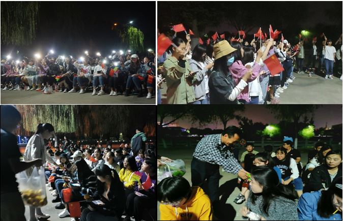 红旗飘扬,月饼飘香,2020年的中秋节与国庆节喜相逢。为庆祝双节,使2020级新生感受到来自建工学院大家庭的温暖,10月1日晚7点,学院在汉梁楼前小广场举行“喜迎双节 爱在商师”迎新晚会。党总支副书记张晓春、团总支书记韩秋、20级辅导员张颖辉老师出席晚会,20级体全体新生以及教官参加活动。