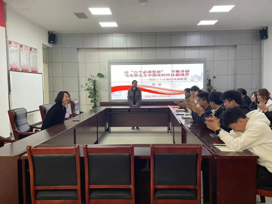 首先,贾丽肯定了学生积极向党组织靠拢的热情,以党的二十大报告精神为主线,向同学们讲述了中国共产党党史,并引导教育学生将马克思主义思想与中国化时代化相联系。贾丽明确指出入党积极分子们必须做到坚持人民至上,明确“四个自信”,坚持科技创新以自立。在思想抱负上,贾丽强调各位积极分子必须坚持守正创新,辩证统一看待“正”与“新”;必须坚持系统观念,加强前瞻性思考,全局性谋划;必须坚持胸怀天下,为中华民族谋复兴。最后,贾丽强调青年一代的重要性,勉励青年领会党的创新理论并武装头脑,指导实践,推动工作,创造青年价值。