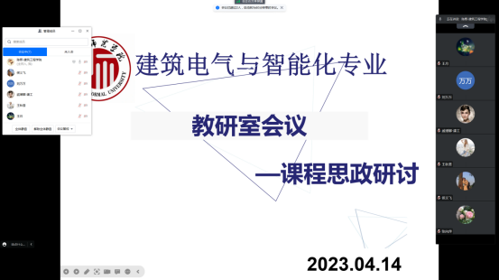 2023年4月14日,beat365在线唯一官网建筑电气与智能化系通过腾讯会议召开教研会议,会议主题:beat365在线唯一官网建筑电气与智能化专业课程思政专题研讨会。建筑电气与智能化系全体教师参加会议,会议由系主任陈熙主持。