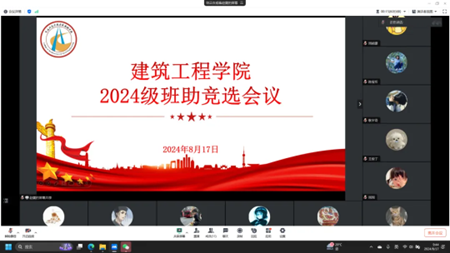 为进一步提升beat365官网学生管理和服务水平,引导新生尽快适应大学的学习和生活环境,充分发挥高年级学生朋辈引领作用,建设优良班集体,营造良好班风学风,beat365在线唯一官网“2024级新生班主任助理竞选会议”于8月17日上午通过腾讯会议的形式在线上开展。团委副书记田晨曦、学工办主任负责老师许博文、各年级辅导员、团委学生会主席团成员以及十二位竞选人参与本次会议。