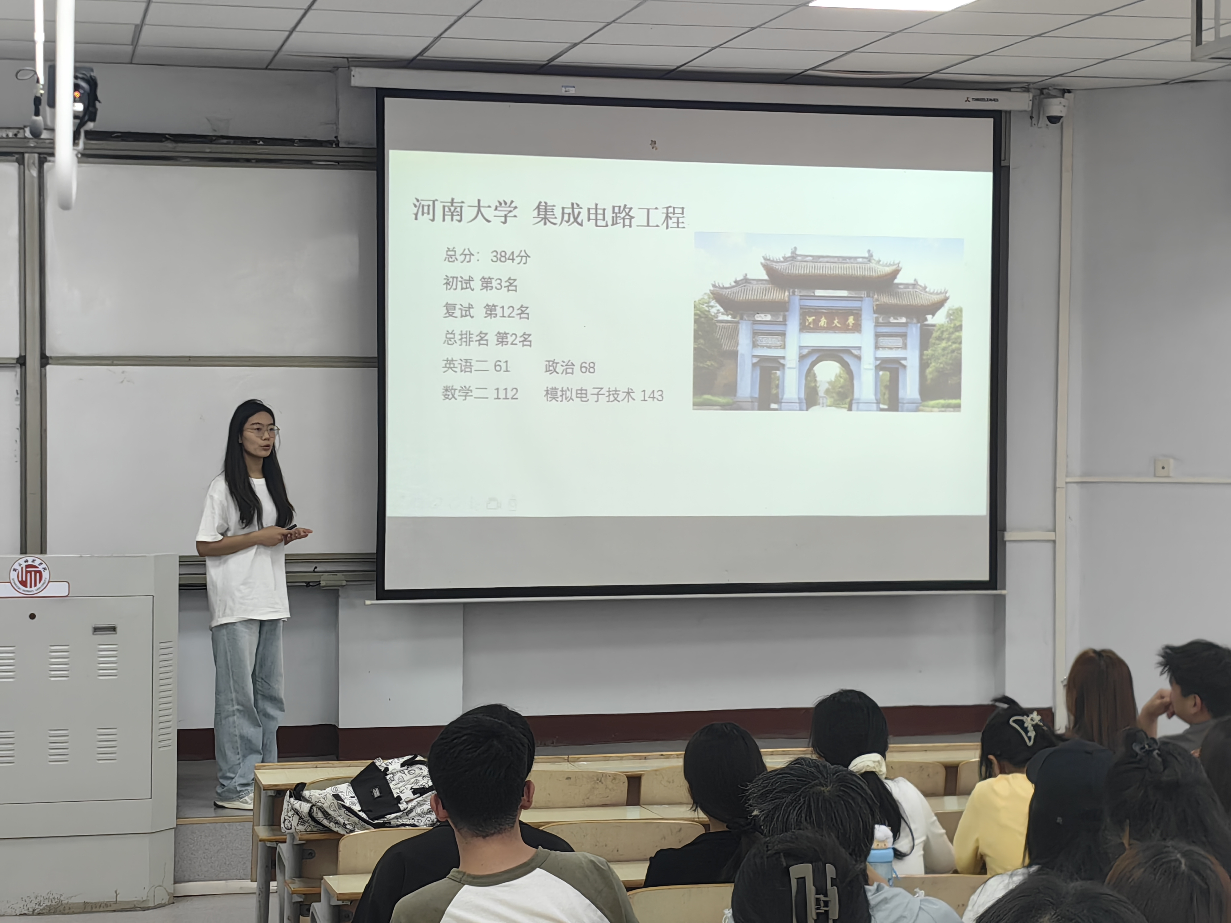 为帮助在校学生明确考研方向、掌握备考技巧,2025年5月28日,建筑电气与智能化专业在1号教学楼106举办考研经验交流会,会议由侯义飞老师主持。本次活动邀请到6位成功考取研究生的学长学姐分享经验,吸引100多名学生参与。