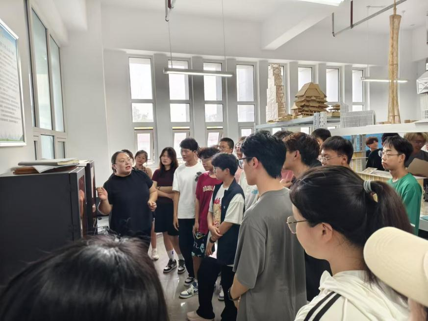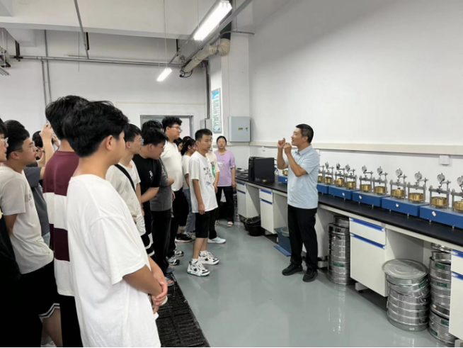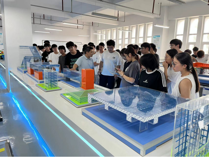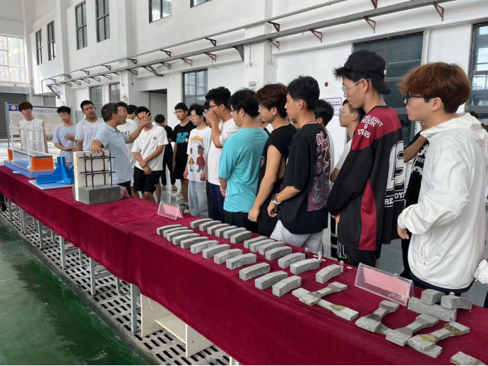 高永辉在结构大厅向同学们介绍新型建筑材料及其应用;在结构模型室,向同学们介绍节点模型构造,帮助学生认识并了解模型名称及构造原理;介绍框架结构体系梁柱基本构造原理,帮助大家建立建筑结构体系的认知,简单了解梁柱基本结构体系的内容;在建筑材料实验室,向同学们介绍各种建筑材料的检测检验仪器,帮助大家简单了解建筑材料的基本性能及检验方法。